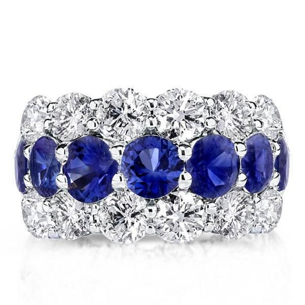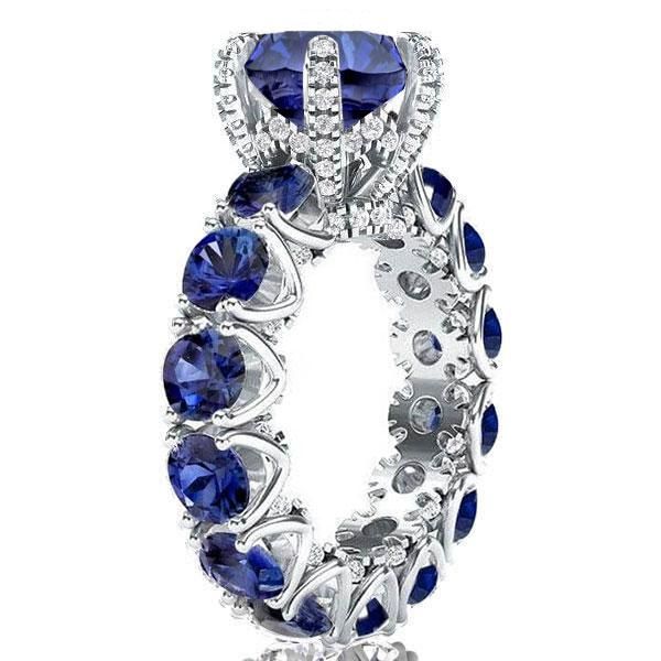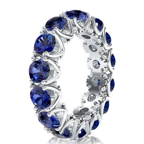 Italo Round Cut Blue Sapphire Eternity Wedding Band Size 6(U.S.)